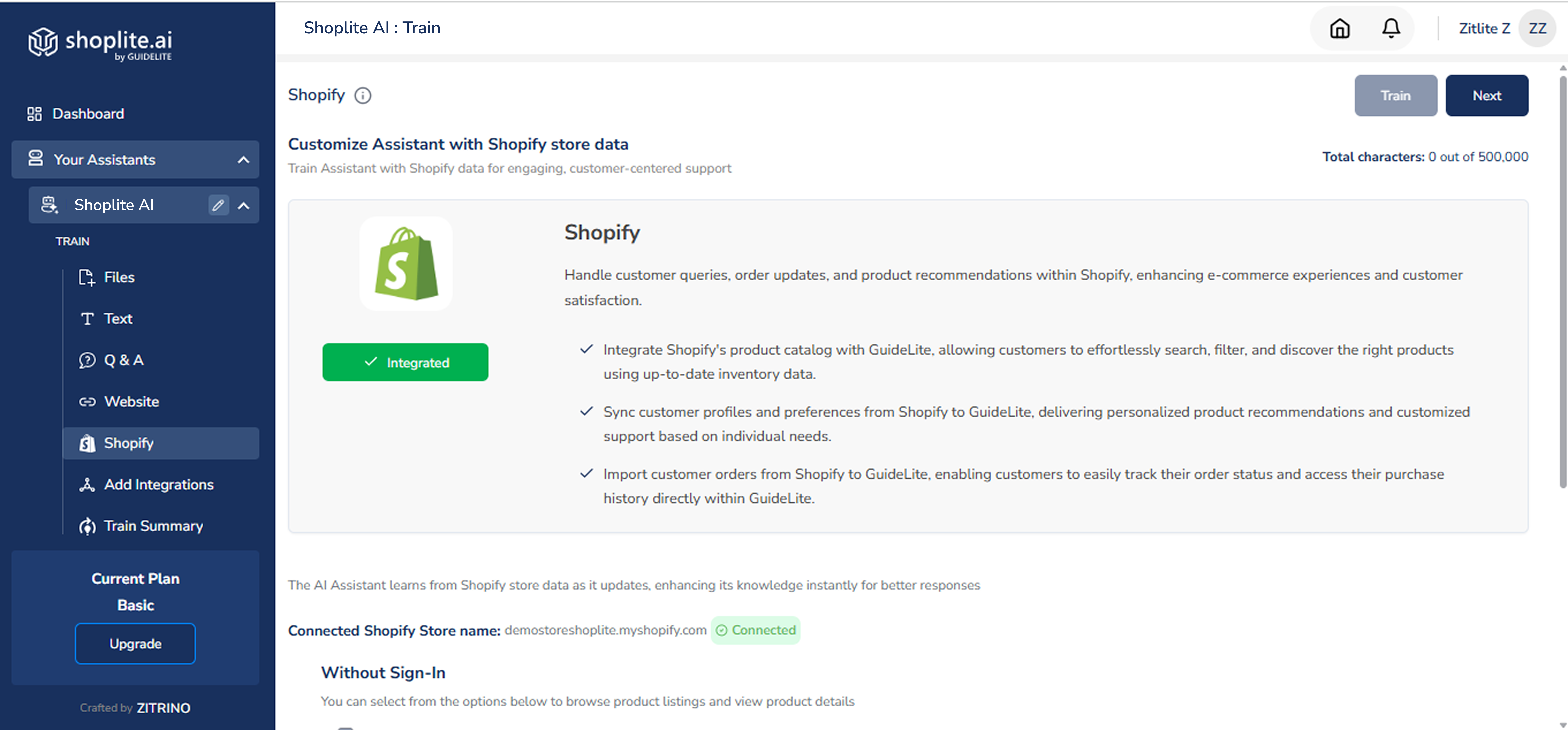 - Choose the desired AI Assistant functionalities (e.g., Product Listing, Product Details).