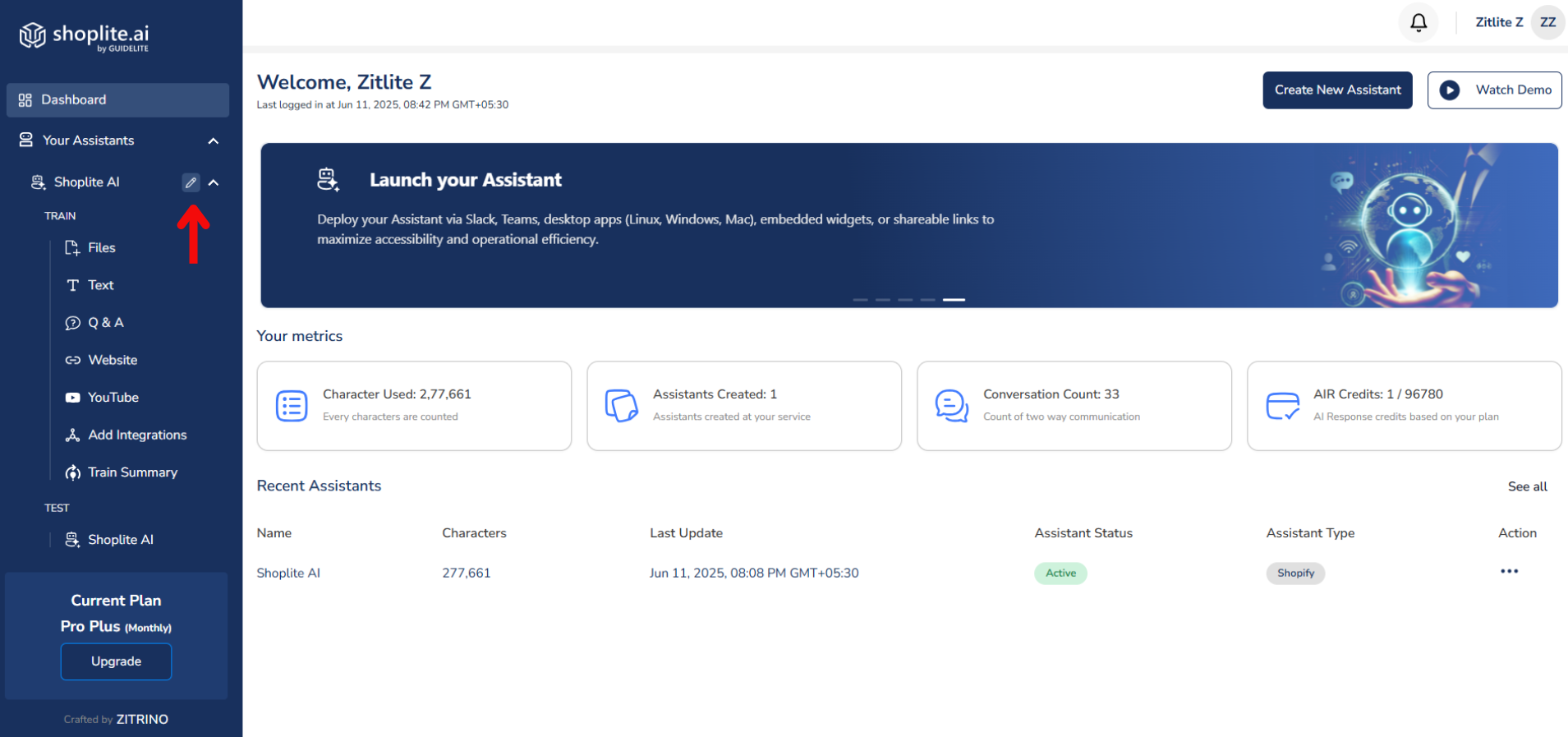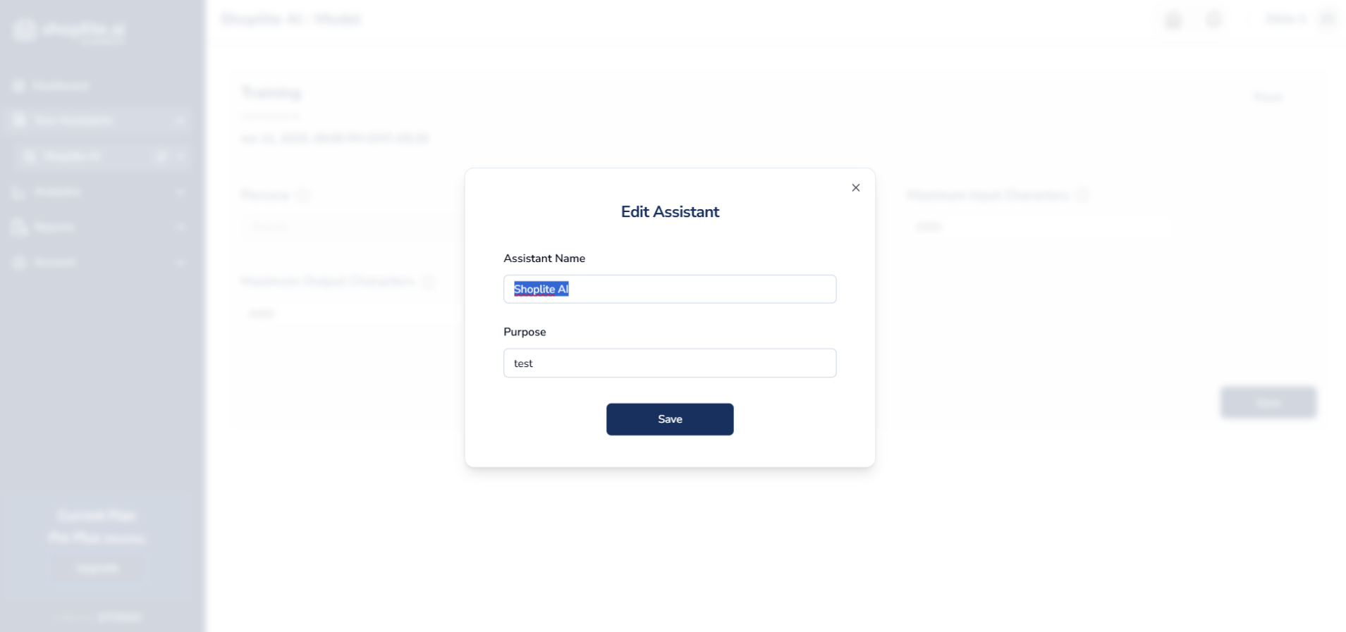Shoplite provides you access to change the Name and Purpose of the Assistant that has been created.