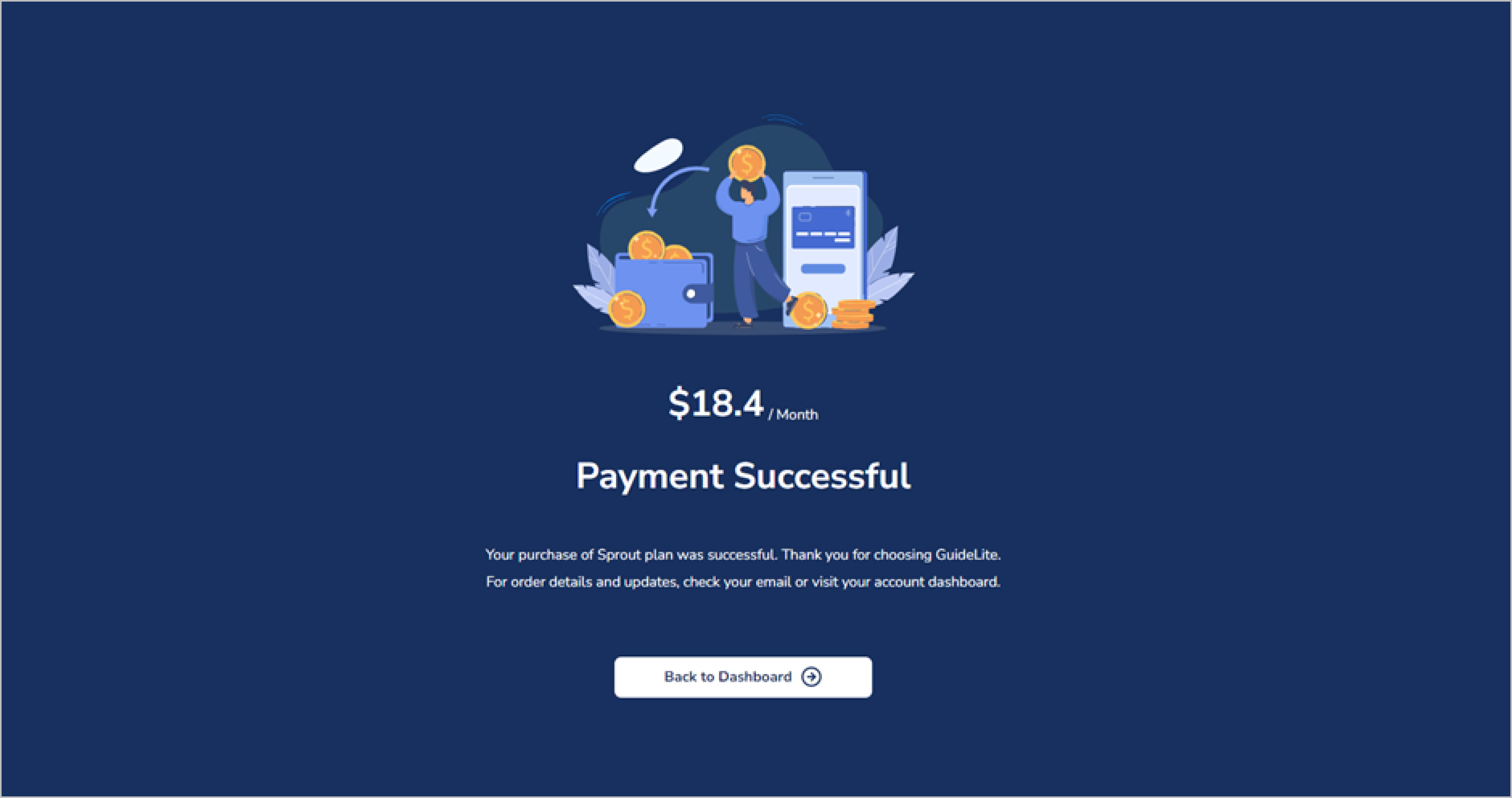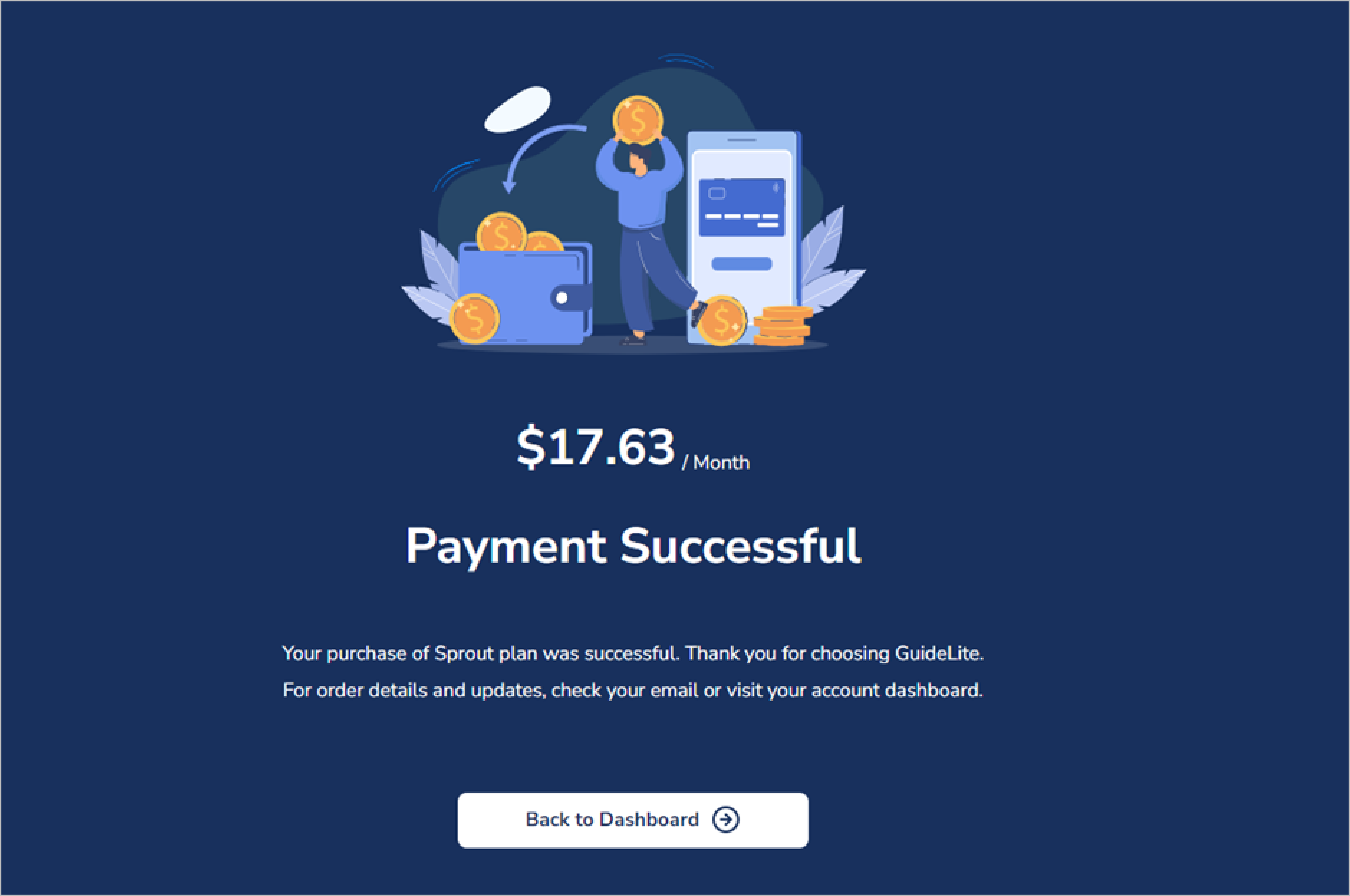 Your account will be updated with the plan you've selected. Click Back to Dashboardto return to the main page.