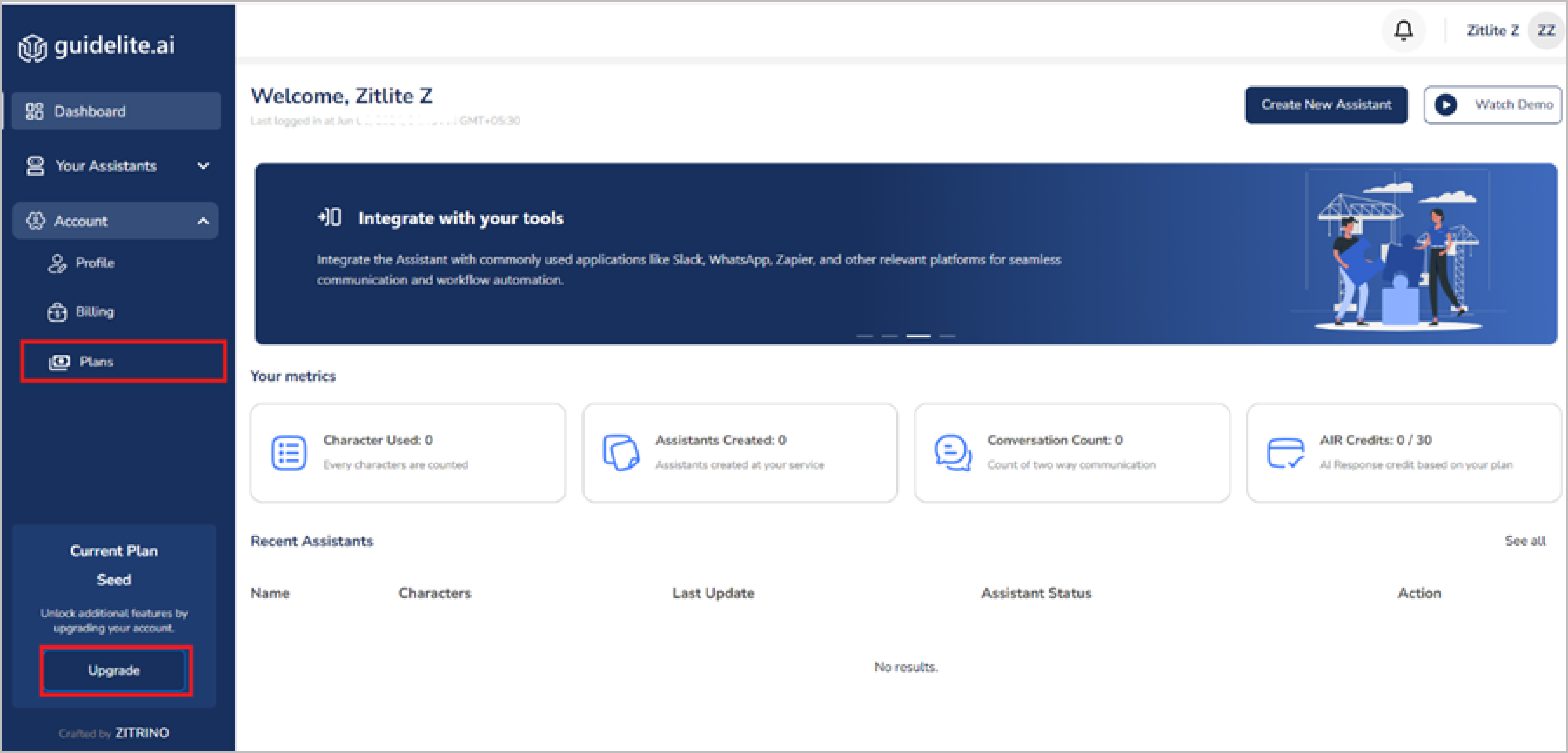 The changes will take immediate effect. Users will have the option to retain the previously created assistants if the selected plan permits and all the additional Assistants will in inactive status.
