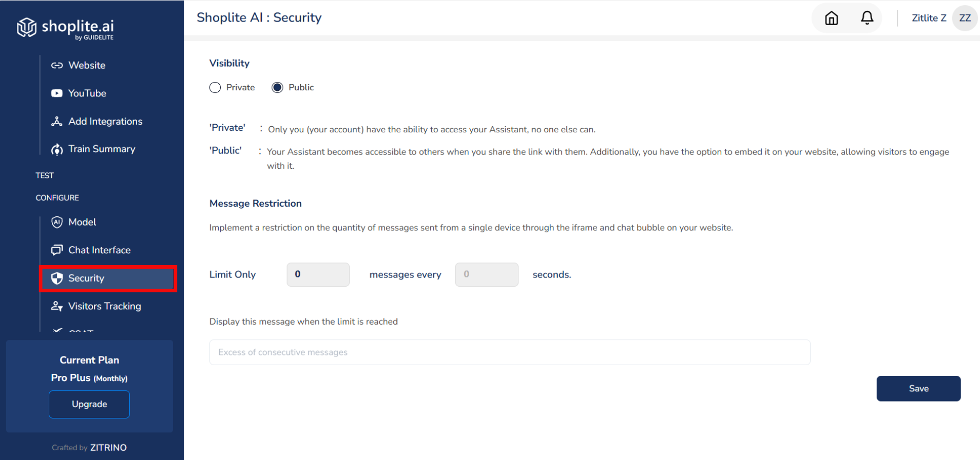 - Opt for Public to allow anyone with the link to interact with your assistant and embed it on your website.