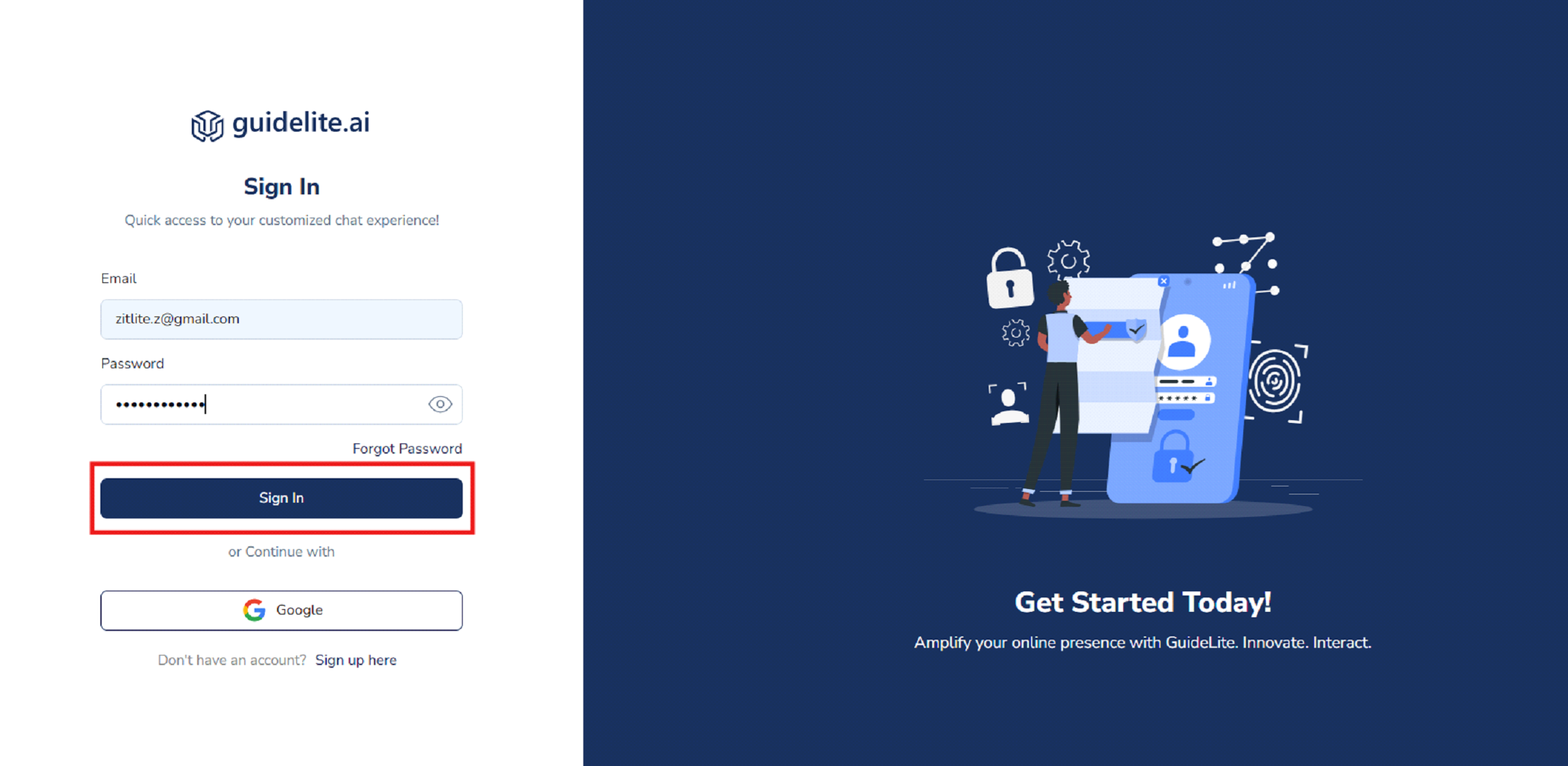 Sign In your GuideLite Account
