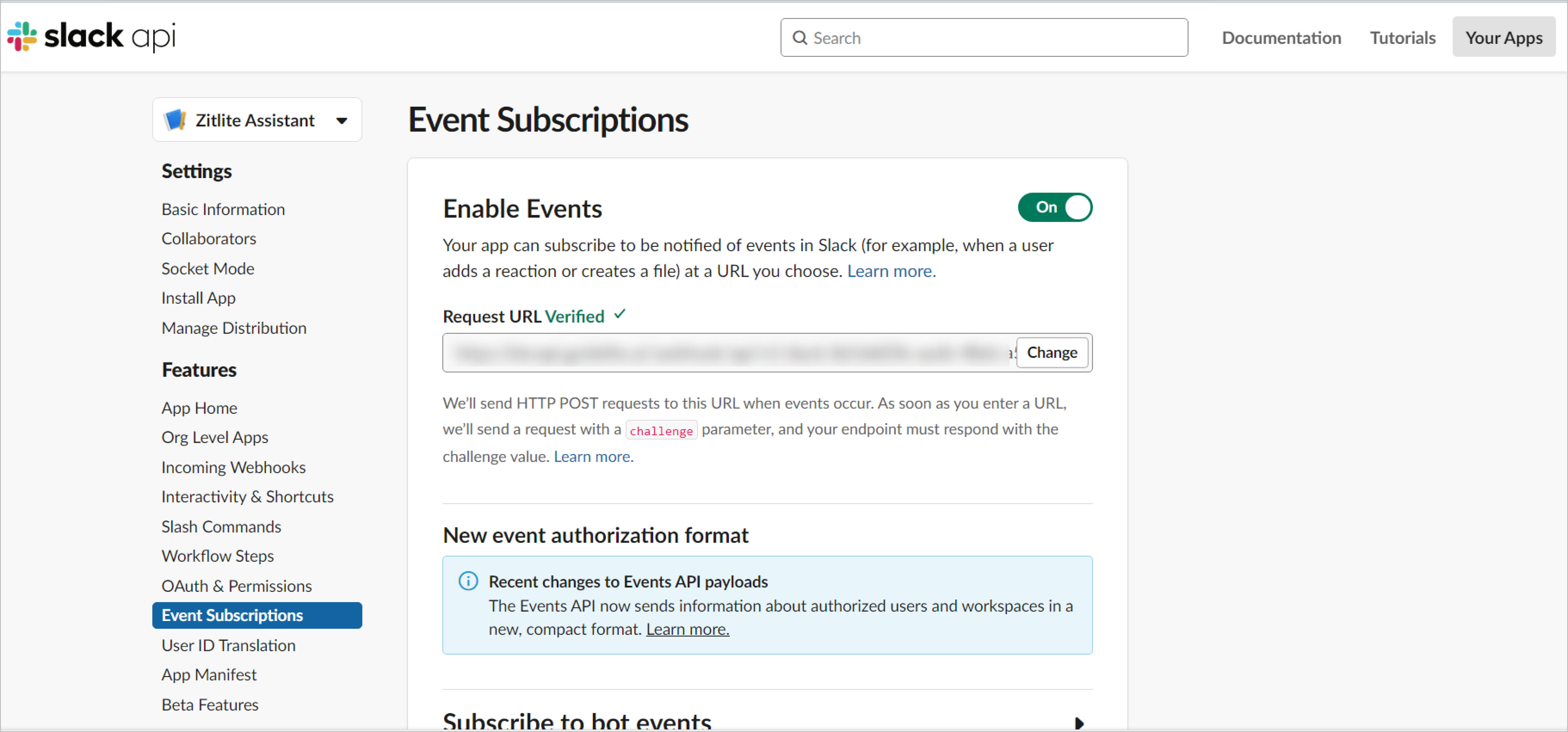 Once verified in the Events Subscriptions, click on verify in the Slack Integration Details Popup to complete the verification.