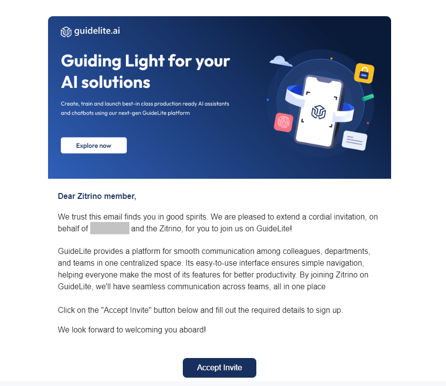 Once the invite has been sent, a team member will receive an invitation email prompting them to click the Accept Invite button.