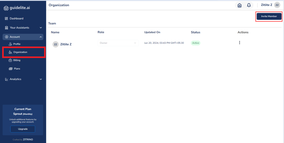 After accepting the invite, the team member can join the organization by entering their user credentials.