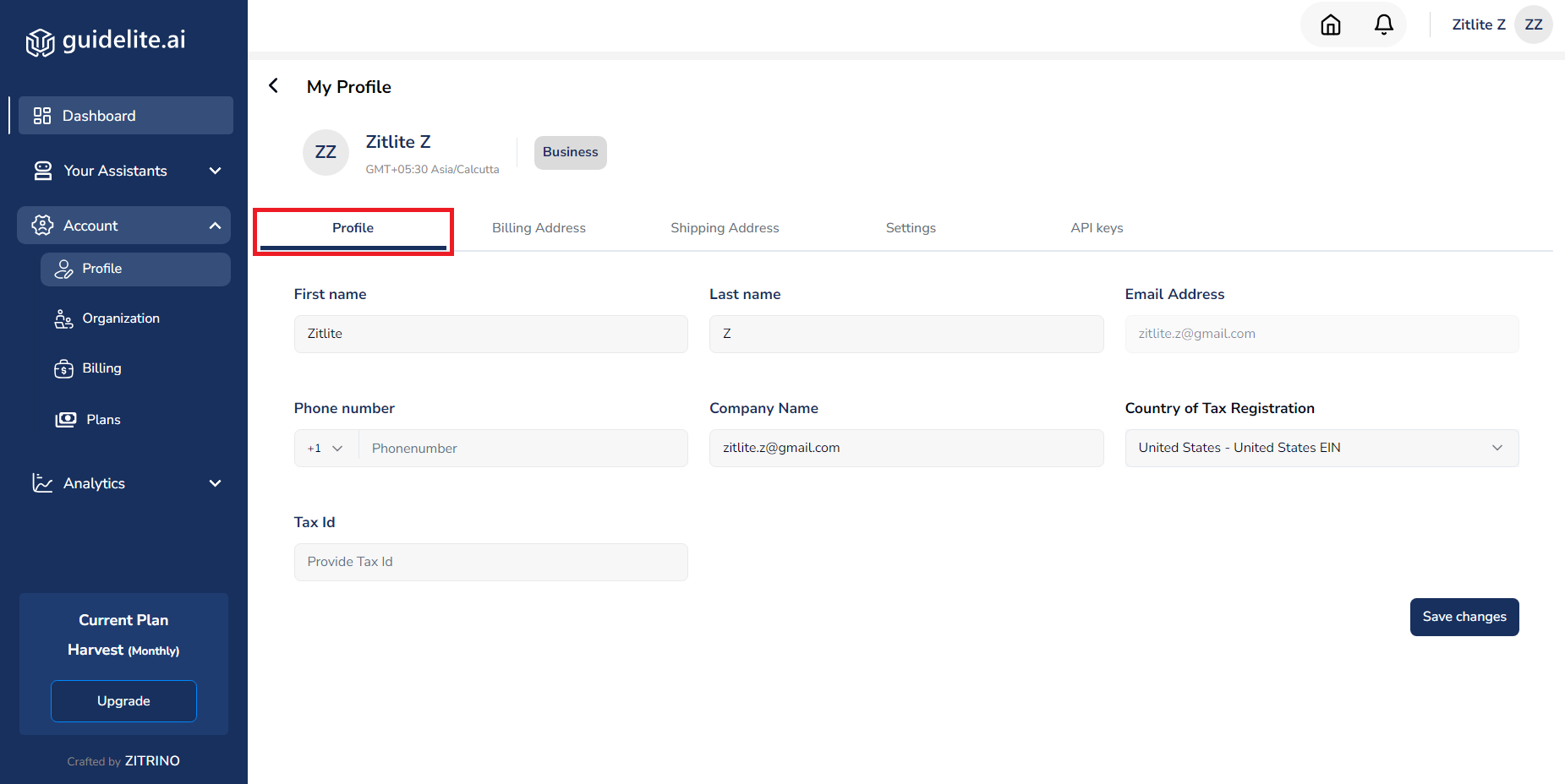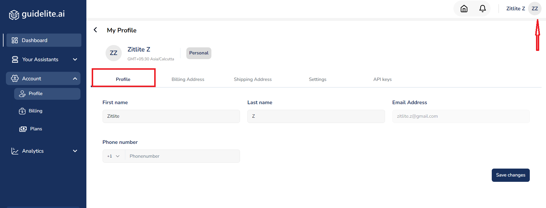 From your dashboard, you can access your profile by either clicking your Profile Icon or by selecting Profile from the Account section in the left panel.