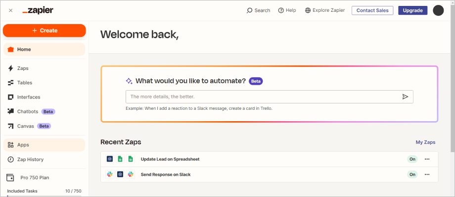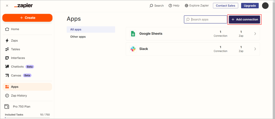 - Go to your Zapier dashboard and click on Apps from the sidebar.