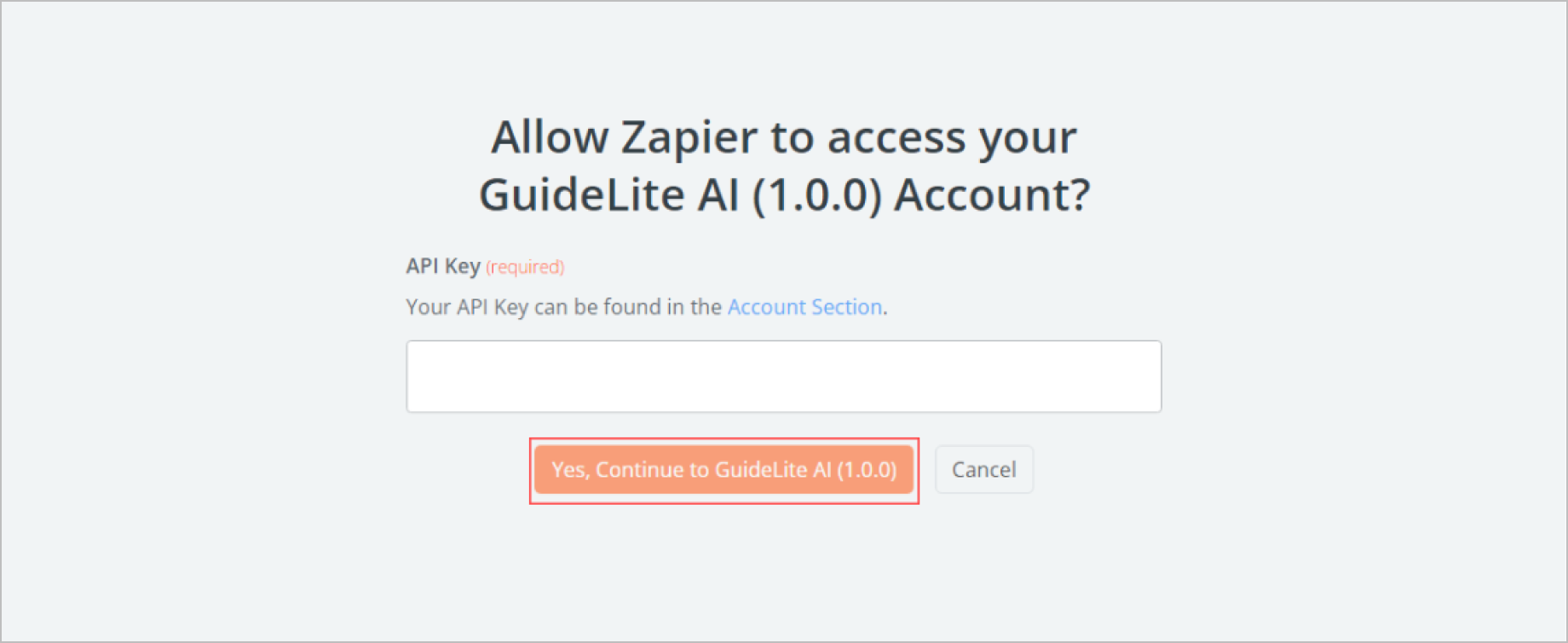 - You'll be prompted to enter an API Key to connect your GuideLite account.
