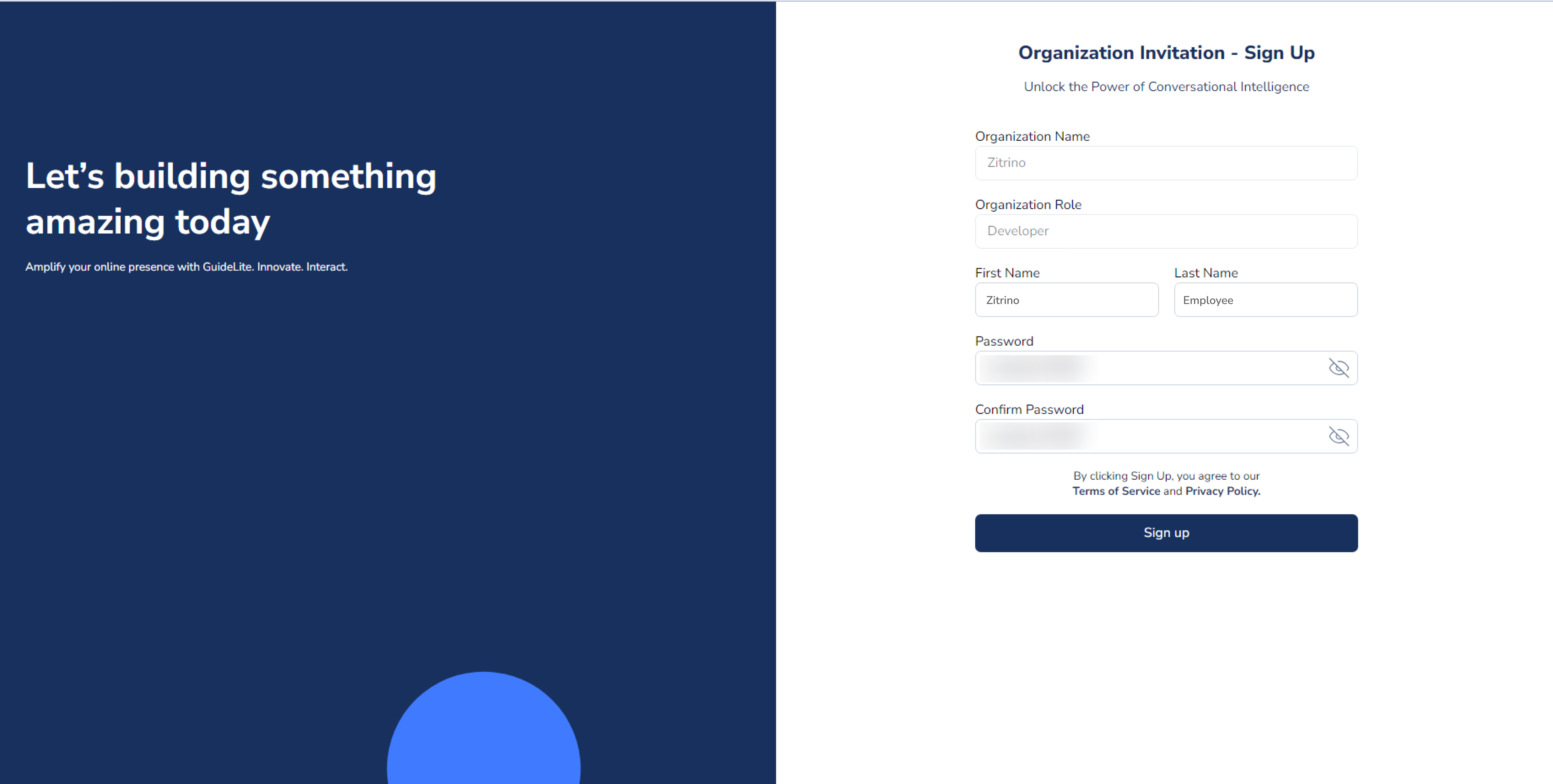 After accepting the invite, the team member can join the organization by entering their user credentials.